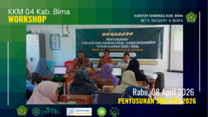 Bima, 08 April 2026 – Guru-guru madrasah yang tergabung dalam KKM 04 Kabupaten Bima melaksanakan kegiatan penyusunan kisi-kisi dan naskah soal Ujian Madrasah Tahun Ajaran 2025/2026 pada Rabu, 08 April 2026, pukul 09.00 WITA, bertempat di MTs Negeri 4 Bima selaku madrasah penyelenggara sekaligus Ketua KKM 04 Kabupaten Bima.